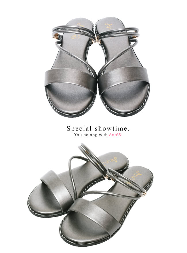 【Ann’S】舒適寬版小水鑽2way平底涼鞋(銀灰)