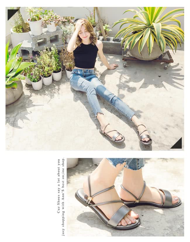 【Ann’S】舒適寬版小水鑽2way平底涼鞋(銀灰) 評價